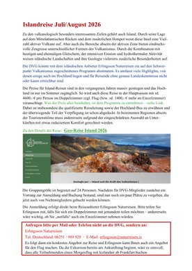 Vulkanologische Spezial-Exkursion für DVG-Mitglieder nach Island