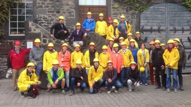 "Vulkanasche" hieß das Thema einer Tagung vom EU-finanzierten Netzwerk VERTIGO, koordiniert durch die LMU München, die über 8 Tage in der Laacher-See-Region mit Unterstützung des Dr. F. X. Michels-Institutes der Deutschen Vulkanologischen Gesellschaft durchgeführt wurde. Zu den Höhepunk-ten gehörte für  die 40 Teilnehmer aus ganz Europa der Abstieg in den Mendiger Lavakeller, geführt vom DVG-Mitglied Dr. Volker Repke (links).