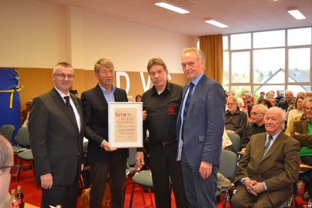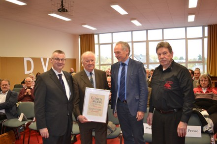 Glückwunsch auch für Ehrenmitglied Mitglied war Prof. Dr. Wilhelm Meyer (Zweiter von links) ebenfalls, der über 20 Jahre als stellvertretender Vorsitzender tätig war. Es gratulierten Dr. Alexander Saftig (links im Bild) sowie (von rechts) Wolfgang Kostka und Professor Lothar Viereck.