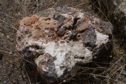 Am zweiten Tag ging es zunächst zum Rockeskyller Vulkan, an dem man besonders gut den Anschnitt von Vulkanschlot und Vulkanflanke studieren konnte. Auf den umliegenden Feldern konnten dann Pyroxenite, Hornblendite, größere Sanidinbruchstücke und Karbonatitlapilli gesammelt werden. Danach ging es zum Vulkan Krümmel. Hier konnte man besonders gut die unterschiedlichen Ausbildungen der Melilith-Nephelinite studieren. Das Gestein tritt hier sowohl als Lavafluss in der üblichen Deckenausbildung und als massive Anhäufung von kugeligen Bomben mit Durchmessern von 3 – 25 cm auf. Darüber hinaus konnten die Belege einer hydrothermalen Nachphase studiert werden.