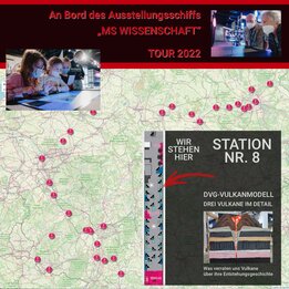 Das Vulkan-Modell der DVG war im Jahr 2022 auf großer Tour mit der MS Wissenschaft und ihrer Ausstellung. (Mehr Infos hier.)